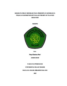 Nisa', Neny Khoirun (2025) Kekhawatiran menikah pada perempuan generasi Z: Tinjauan konsep belief dalam Theory Of Planned Behavior. Undergraduate thesis, Universitas Islam Negeri Maulana Malik Ibrahim.