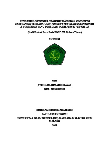 Hidayat, Syuhdan Ahmad (2025) Pengaruh consumer innovativeness dan perceived usefulness terhadap new product purchase intention di e-commerce yang dimediasi oleh perceived value: Studi produk baru pada POCO X7 di Jawa Timur. Undergraduate thesis, Universitas Islam Negeri Maulana Malik Ibrahim.