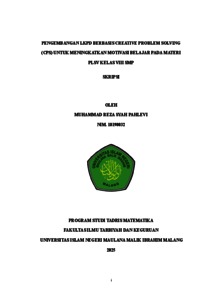 Pahlevi, Muhammad Reza Syah (2025) Pengembangan LKPD berbasis Creative Problem Solving (CPS) untuk meningkatkan motivasi belajar pada materi PLSV Kelas VIII SMP. Undergraduate thesis, Universitas Islam Negeri Maulana Malik Ibrahim.