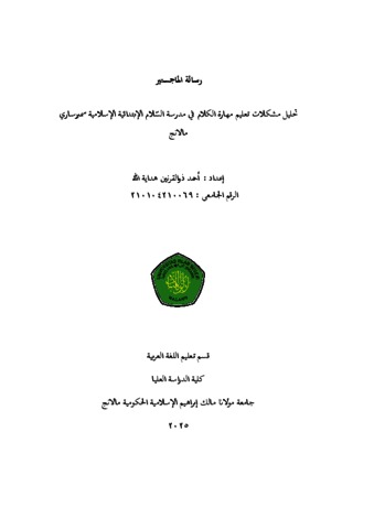 Hidayatullah, Achmad Dzulqornain (2025) تحليل مشكلات تعليم مهارة الكلام في مدرسة السّلام الإبتدائية الإسلامية سمبرساري مالانج. Masters thesis, Universitas Islam Negeri Maulana Malik Ibrahim.
