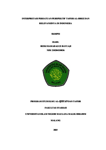 Bayuaji, Rizki Ramabagus (2025) Interpretasi persatuan perrspektif Tafsir Al - Ibriz dan relevansinya di Indonesia. Undergraduate thesis, Universitas Islam Negeri Maulana Malik Ibrahim.