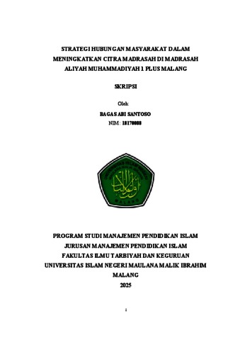 Santoso, Bagas Abi (2025) Strategi hubungan masyarakat dalam meningkatkan citra madrasah di Madrasah Aliyah Muhammadiyah 1 Plus Malang. Undergraduate thesis, Universitas Islam Negeri Maulana Malik Ibrahim.