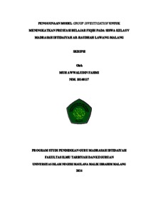 Fahmi, Muh Awwaludin (2923) Penggunaan model group investigation untuk meningkatkan prestasi belajar fiqih pada siswa Kelas V Madrasah Ibtidaiyah Ar-Raudhah Lawang-Malang. Undergraduate thesis, Universitas Islam Negeri Maulana Malik Ibrahim.