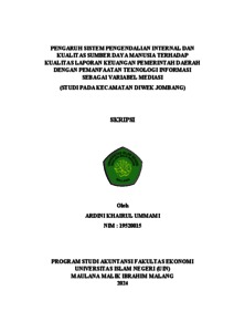 Ummami, Ardini Khairul (2024) Pengaruh sistem pengendalian internal dan kualitas sumber daya manusia terhadap kualitas laporan keuangan pemerintah daerah dengan pemanfaatan teknologi informasi sebagai variabel mediasi: Studi pada Kecamatan Diwek Jombang. Undergraduate thesis, Universitas Islam Negeri Maulana Malik Ibrahim.