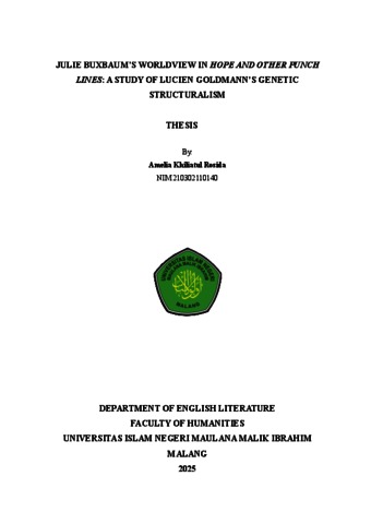 Rosida, Amelia Khiliatul (2025) Julie Buxbaum’s worldview in hope and other punch lines: A study of Lucien Goldmann’s genetic structuralism. Undergraduate thesis, Universitas Islam Negeri Maulana Malik Ibrahim.