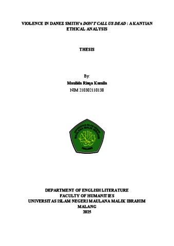 Kamila, Maulida Risqa (2025) Violence in danez smith’s don’t call us dead : A kantian ethical analysis. Undergraduate thesis, Universitas Islam Negeri Maulana Malik Ibrahim.