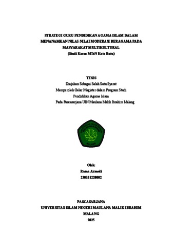 Armedi, Rama (2025) Strategi guru pendidikan agama Islam dalam menanamkan nilai-nilai moderasi beragama pada masyarakat multikultural: Studi kasus di MTsN Kota Batu. Masters thesis, Universitas Islam Negeri Maulana Malik Ibrahim.